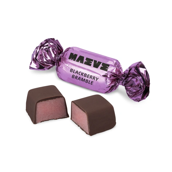Tasting notes: Ripe blackberries and rich dark chocolate slow-dancing in the woods on a moonlit night. Naturally dried blackberries in creamy white chocolate, enrobed in dark chocolate. 5 lb (about 240 pieces).